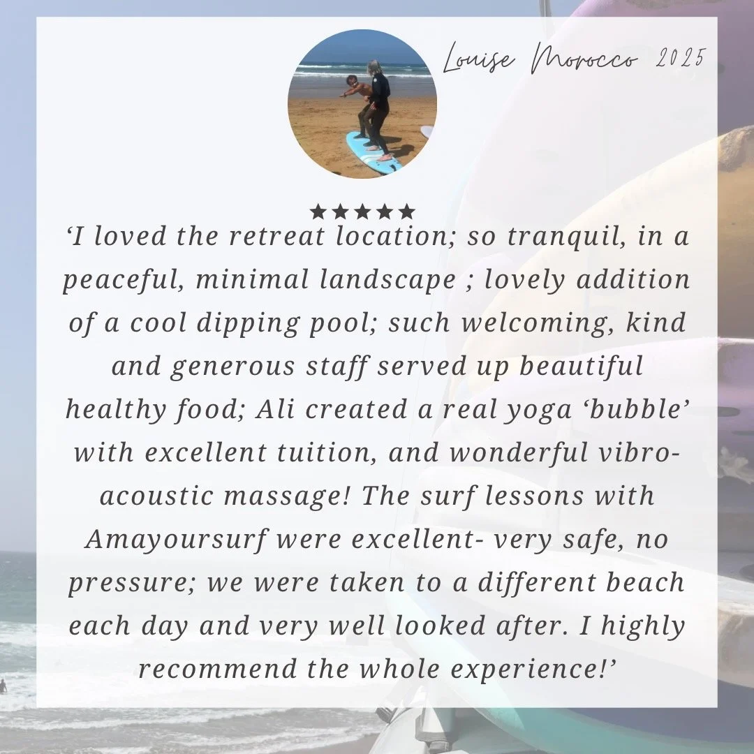 This retreat is designed to feel supportive, unhurried and restorative. You may want to explore with guided experiences or independently or, opt for a day on the beach. For those wanting to take things slower in our sanctuary with rest, journaling, swimming or maybe have a vibroacoustic massage with Ali.
